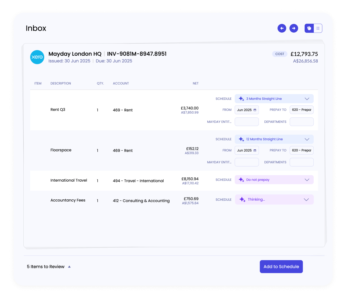 Automate the creation of your prepayment schedules and expense amortisation entries.