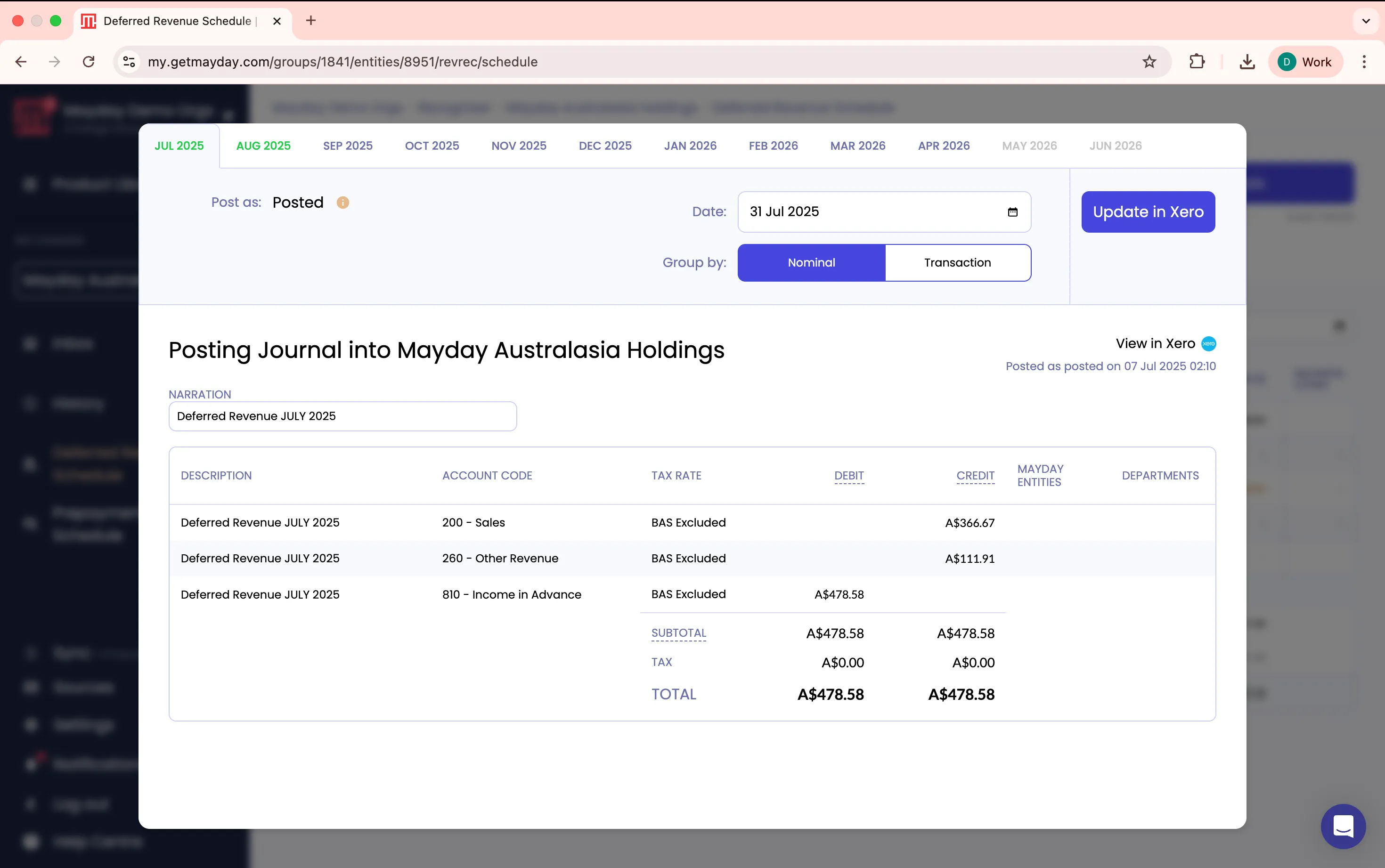 See all your deferred revenue schedules for the financial period in one clear view, so you can easily validate and approve.