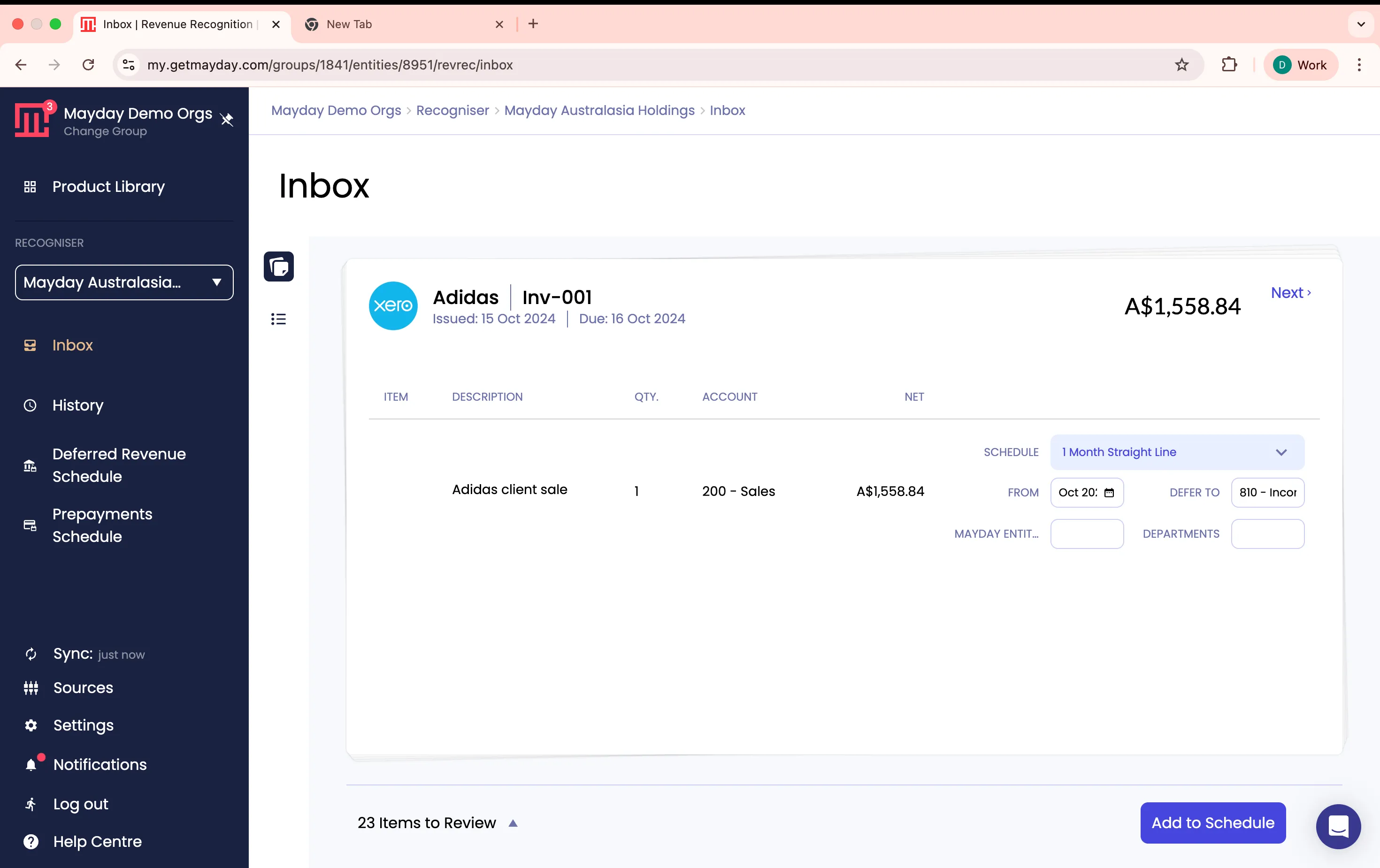Mayday's AI-powered inbox scans all your transactions and surfaces which require deferred revenue schedules.